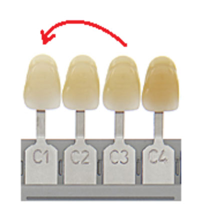 Vamos imaginar que, no início do clareamento, os seus dentes tenham sido classificados como C3 (um tom acinzentado, mais escuro).