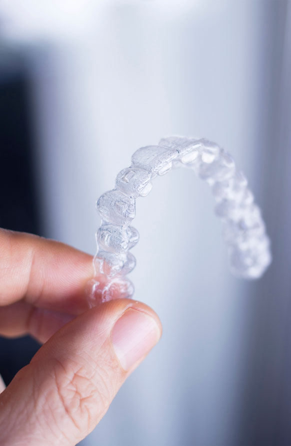 Os alinhadores são transparentes e quase imperceptíveis, garantindo discrição durante o tratamento e preservando a confiança ao sorrir.